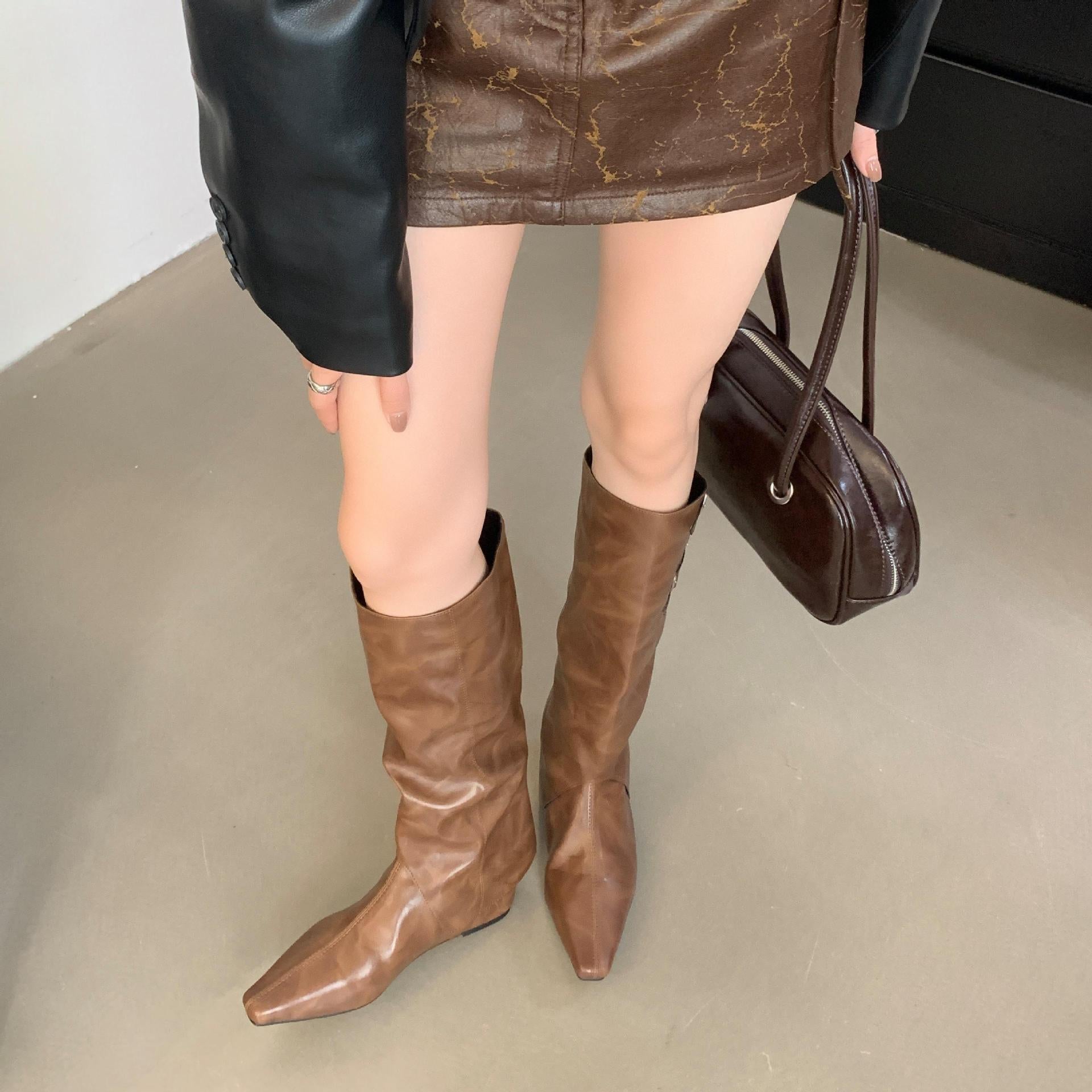 The flat, non-slip sole provides steady comfort in both the short and tall version. Ideal for pairing with skirts, dresses, tights with shorts, or slim-fit jeans, they offer a balance of femininity, presence, and practicality.